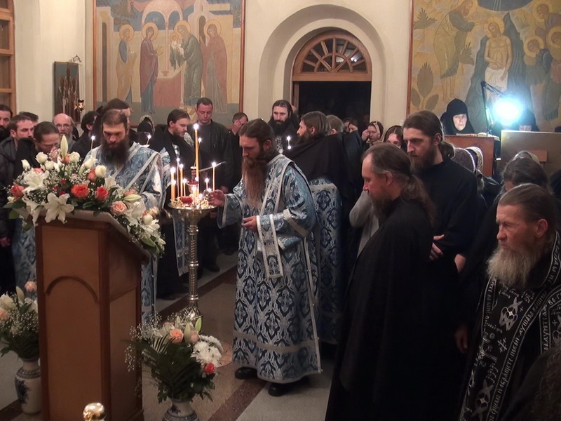Через час после вечернего богослужения, в дни Всенощных бдений -- 22:00, в дни полиелейных праздников -- в 21:30